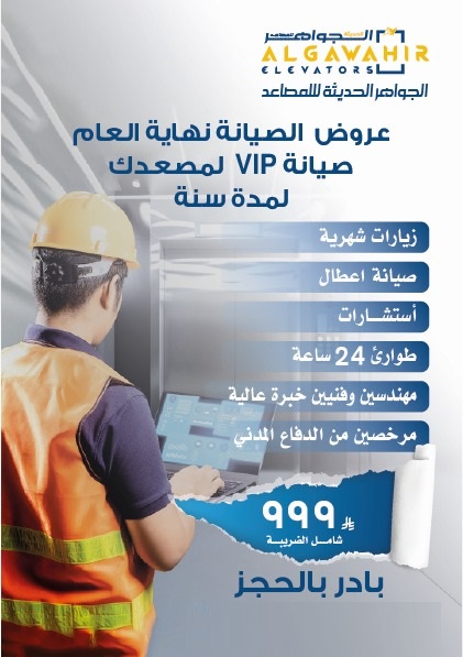 عروض صيانة المصاعد جدة صيانة مصاعد جدة من الجواهر الحديثة للمصاعد 🔧 تأمين مصعدك بأقل تكلفة! عرض صيانة نهاية العام